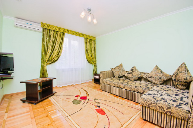 Из мебели имеются двуспальные кровати, раскладной диван, журнальный столик и прикроватные тумбы.