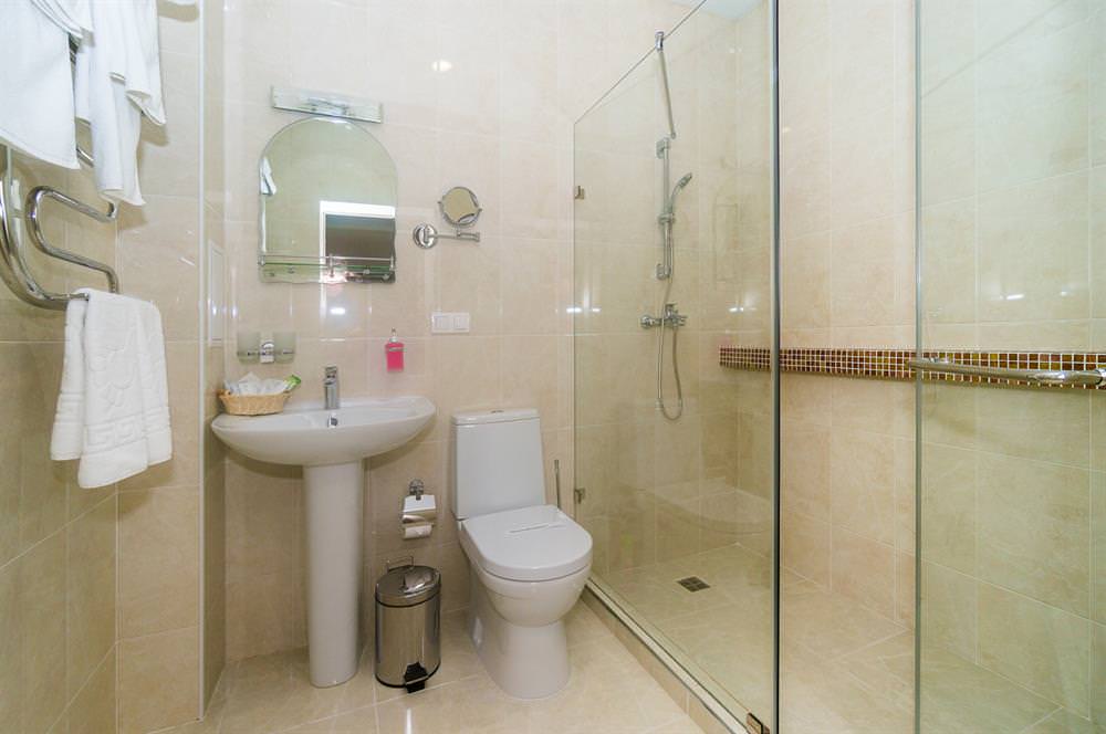 В пользовании гостей будут ванна и набор полотенец. Общая площадь номера 30-38 кв.м.