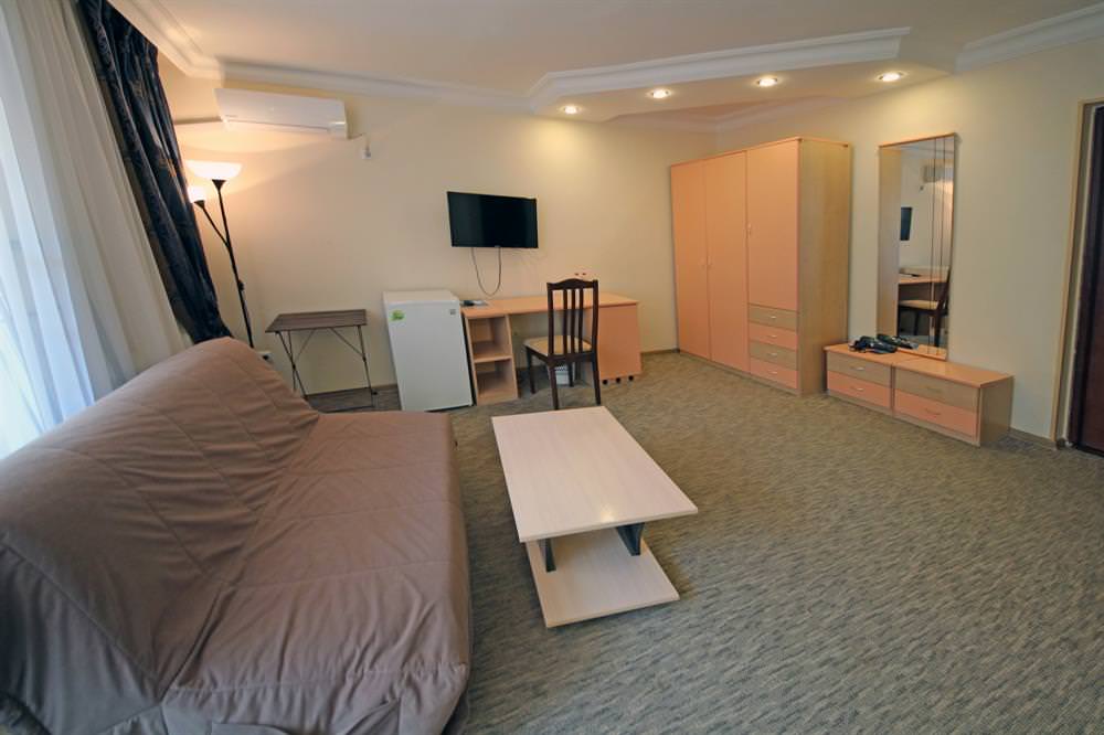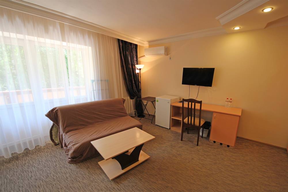 Площадь номера составляет 14 кв.м. Он предназначен для проживания двоих постояльцев.